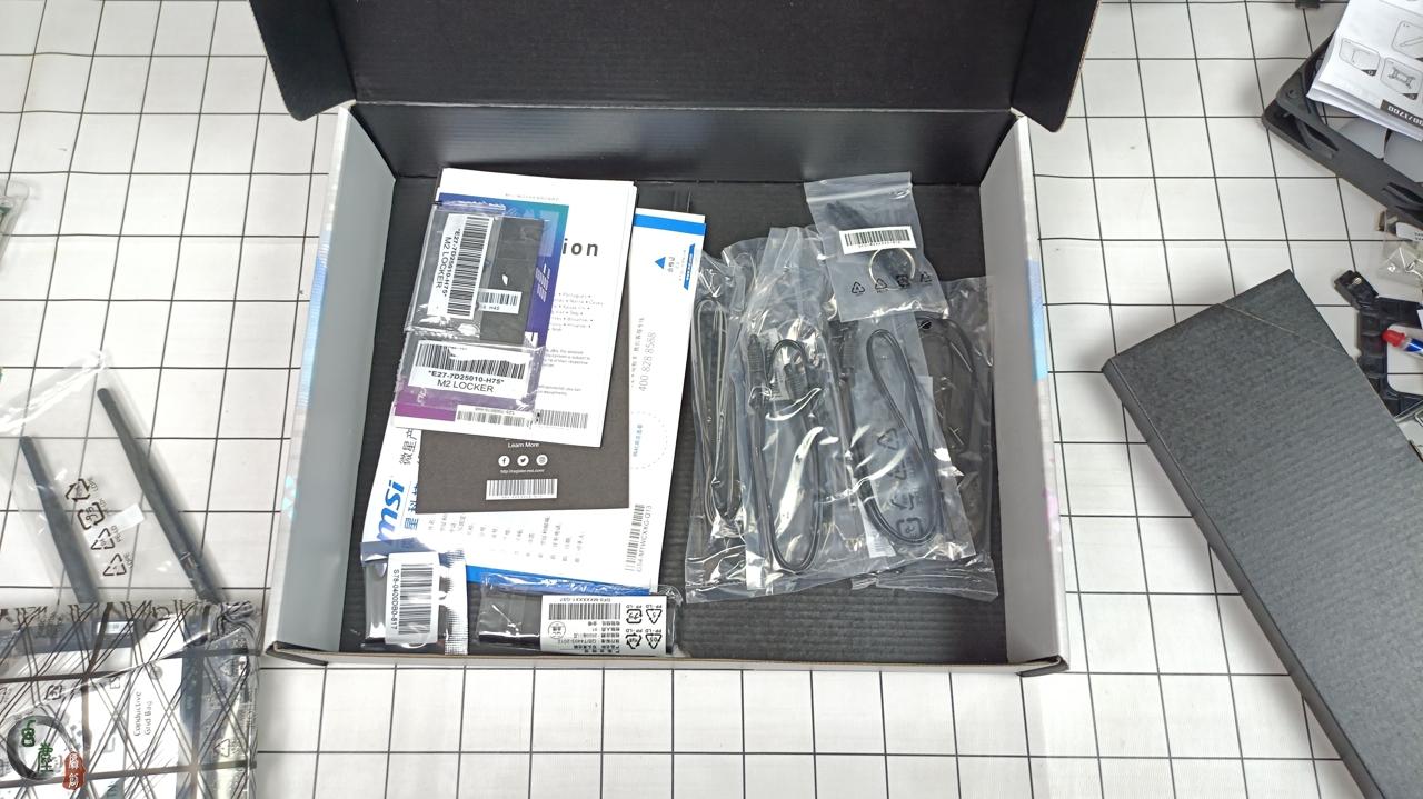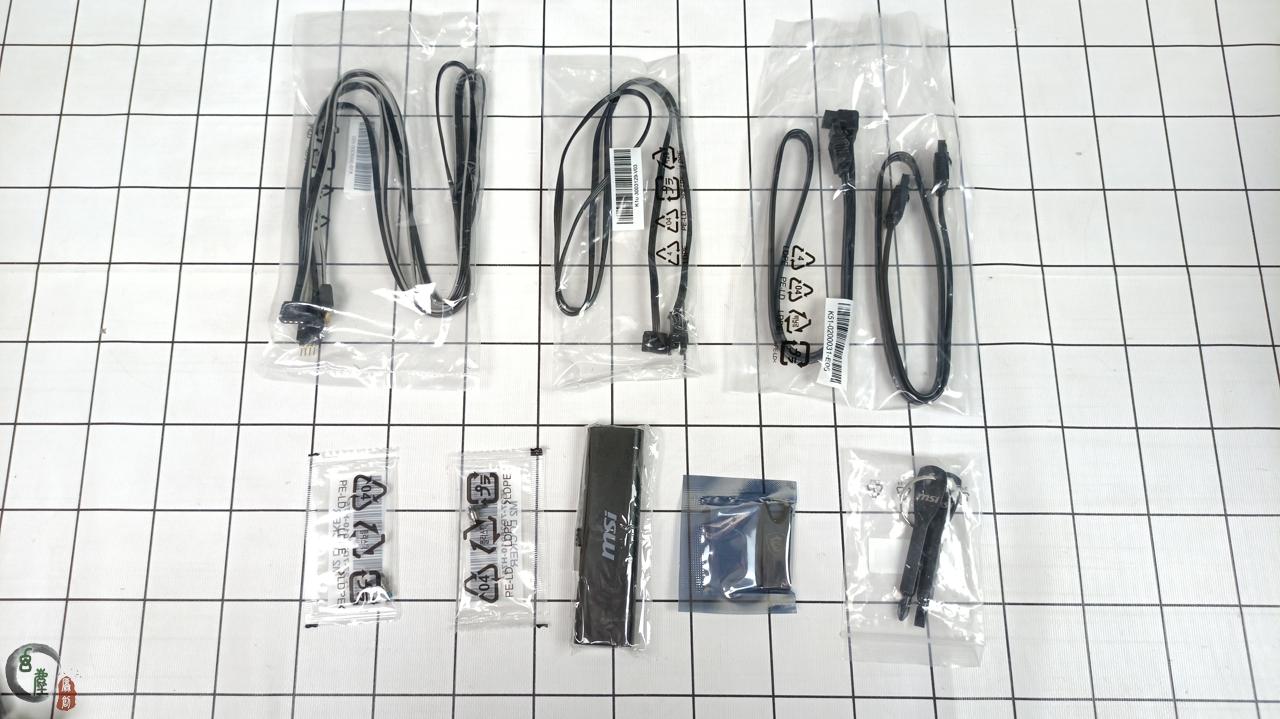这款主板的附件非常丰富,除了大量的纸质附件,还有很多实用性的附件。例如Wi-Fi增益天线天线,SATA数据线,清洁毛刷,驱动U盘,便携式螺丝刀,M.2 SSD固定螺丝,以及一分二RGB延长线,龙盾贴纸等等。