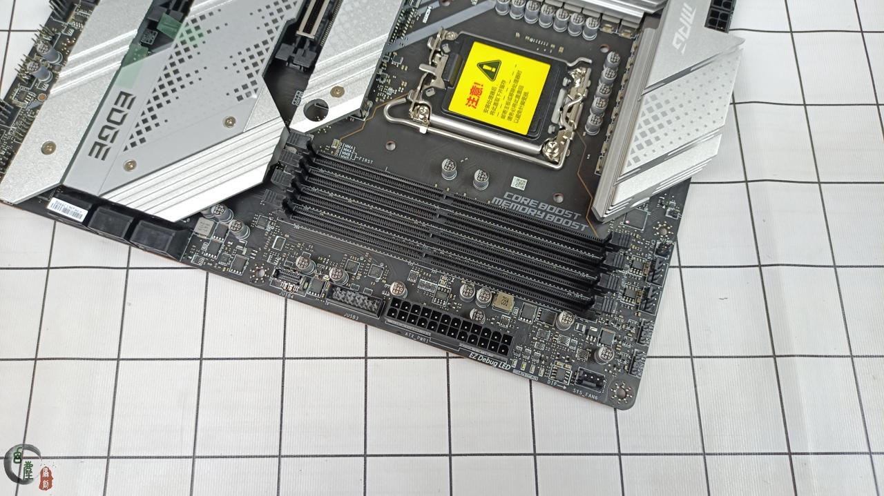 这款主板采用了非常经典的黑白(银)配色,主板PCB为黑色,采用了2oz加厚铜和服务器级材料制成的6层PCB。各种金属散热装甲为银白色,左侧的散热装甲上搭载了带有RGB灯的龙魂LOGO,整个CPU供电MOS管,以及M.2插槽,以及南桥部分也都覆盖了金属散热装甲。整体上让这块主板显得非常,上档次。