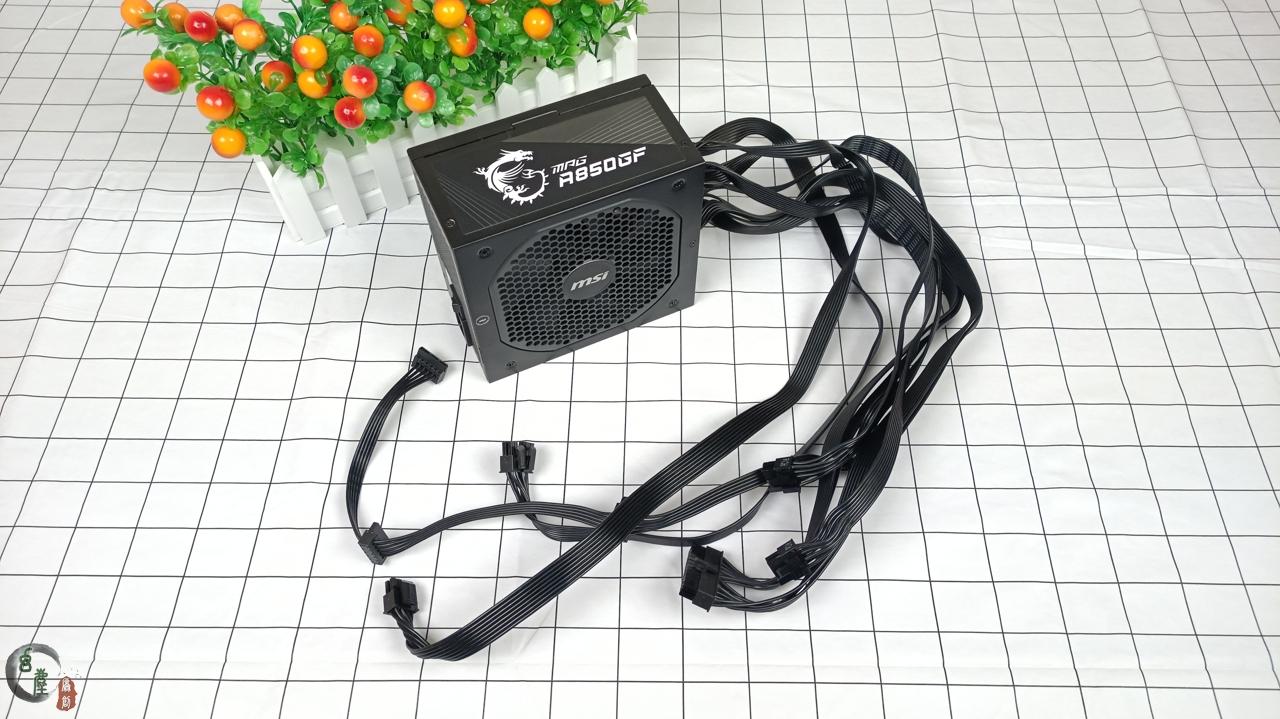 微星的MPG A850GF额定850W全模组电脑电源,乔威代工,采用了四路12V输出,支持12V智能单轨联合输出,12V显卡输出为480W,12V CPU输出为300W。它属于微星电源系列中的旗舰级产品,采用了全日系电容,通过了80PLUS认证,支持十年质保。