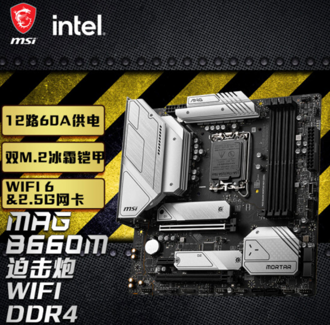 MAG B660M MORTAR WIFI DDR4无线迫击炮也是一样的存在。提供12相60A纯数字供电,轻松驾驭i3~i9全系12th酷睿处理器。配备扩展型散热片,可以进一步降低温度,保证供电,火力全开,强化性能表现加强散热,配备了M.2冰霜铠甲,进一步降低M.2温固态硬盘温度以保证性能,该主板支持DDR4内存加速技术,支持2.5G有线网络以及intel WIFI6高速无线,支持高带宽、高密度、低延迟网络。