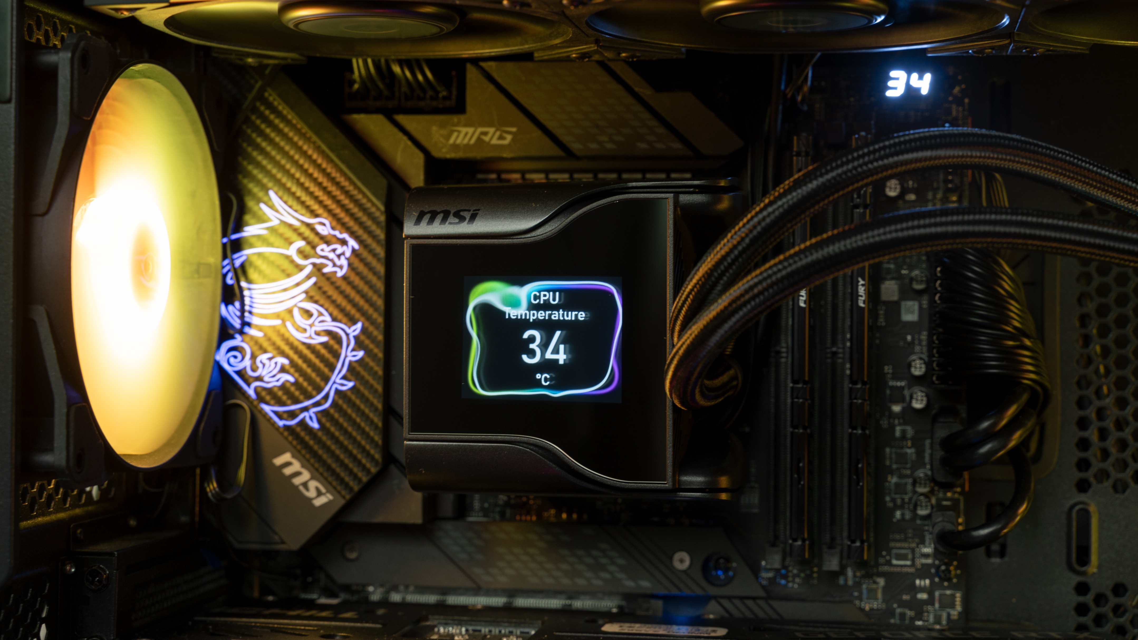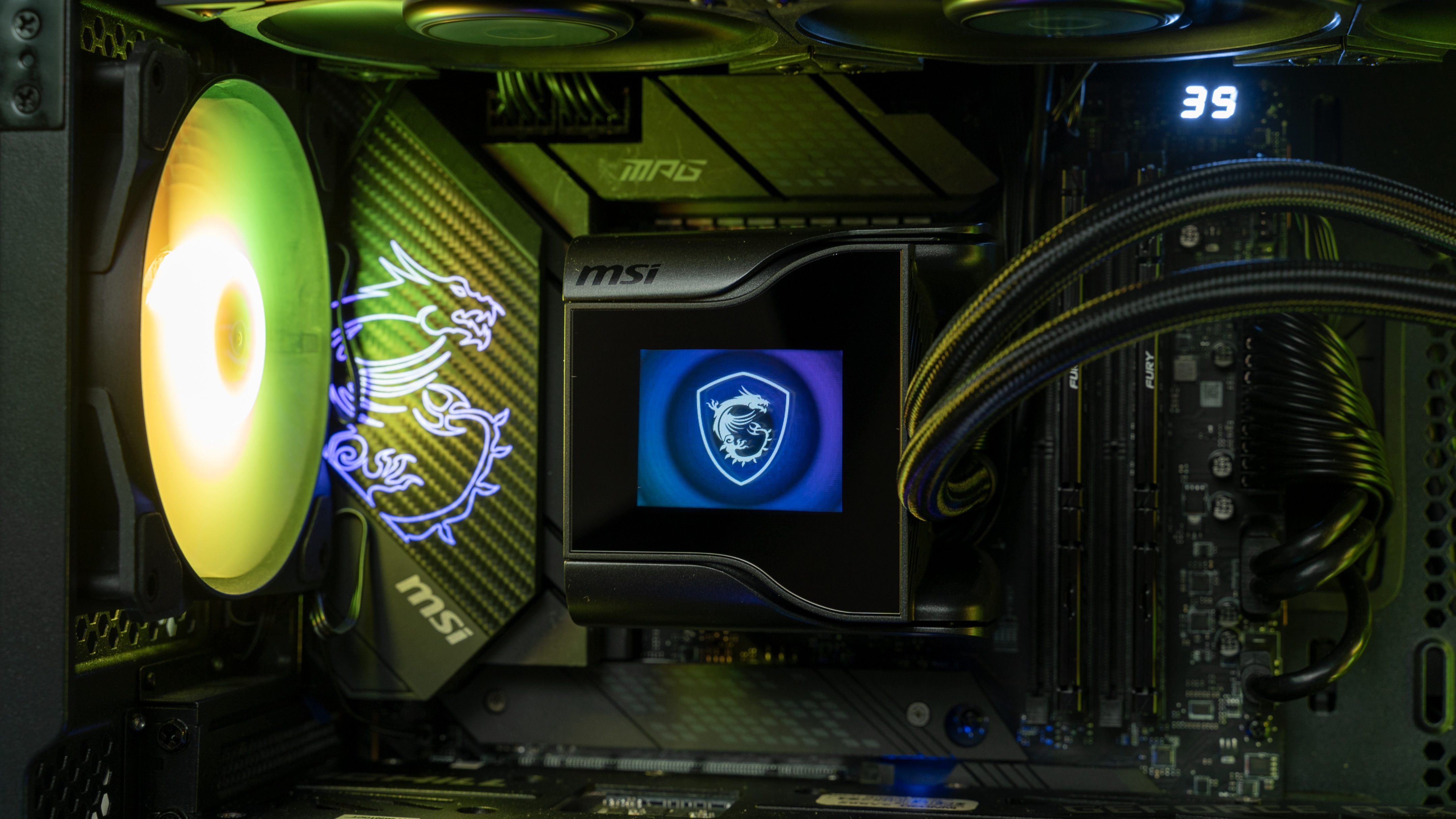 本次测试的机器是微星全家桶搭建的,机箱是一款微星MPG VELOX 100R刀锋,自带四枚ARGB风扇,前三进+后一排的组合风道畅通无阻,CPU是i7-12700KF搭配微星MPG Z690 CARBON WIFI DDR5主板,内存是两根FURY BEAST DDR5-5200 16GBX2,电源是微星MPG A1000G全模组。