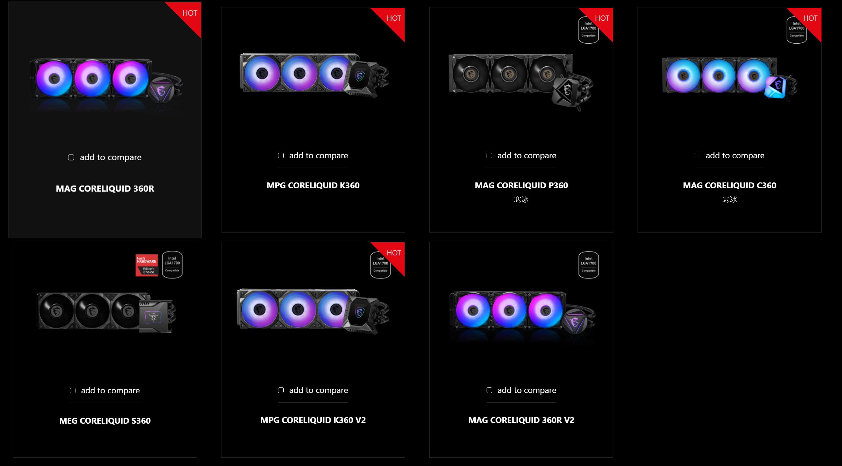 众所周知,微星主板很早就划分MEG、MPG和MAG三个不同定位的系列,随着近些年来全家桶性质的装机兴起,MEG旗舰系列的出现,补全了微星水冷散热器产品线的后一块版图,现在从官网产品页中可以发现,在400元到2000元这个价格区间里面,不同规格(240mm、280mm以及360mm)以不同定位渗透到MEG、MPG和MAG系列当中,微星的竞争力也是很强的。