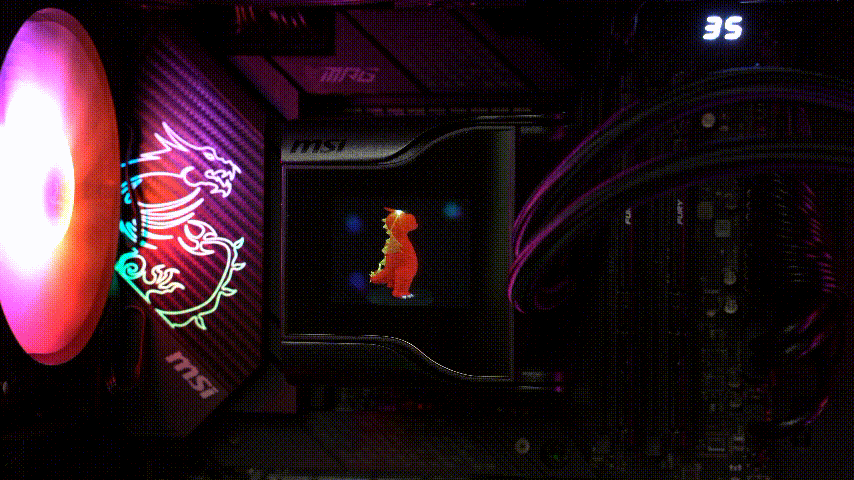 取下上盖之后,露出的是一块2.4寸的IPS材质LCD显示屏,可以显示实时的硬件运行情况,比如CPU频率、CPU温度、水泵转速等,还支持显示静态图片、GIF甚至MP4视频播放,这些都是目前水冷标志性卖点了。