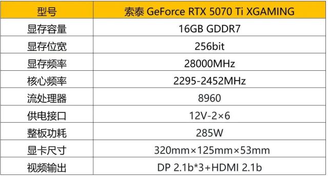 索泰GeForce RTX 5070 Ti XGAMING不仅有着时尚出众的外观,性价比也相当出众。相比于RTX 30系列或更早显卡来说,不仅有着DLSS 4的独占优势,性能提升幅度也相当之夸张,是仍在使用 RTX 3070 Ti 显卡玩家的理想升级选择。而16GB的GDDR7显存规格,也足以应对未来3年的游戏显存需求,且GeForce RTX 5070 Ti 拥有出色超频能力,可进一步提升性能,在当下这个AI时代能满足大部分用户的使用需求,尤其适合追求性价比的2K/4K高刷玩家及AI内容创作者。