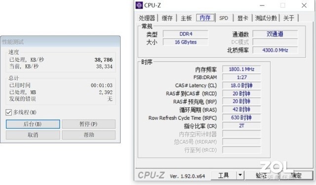 高频率测试:频率3600MHz、时序为18-20-20-42