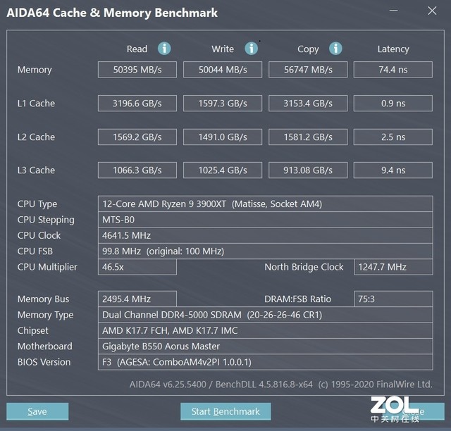 从测试的结果来看的,内存频率的提升,对于性能的影响还是非常大,通过XMP将频率自动同步至3600MHz之后,XPG 龙耀 D50 3600内存的读取速度为50899MB/s,写入速度为51345MB/s,复制速度46071MB/s,延迟为49.9ns,同比2666MHz在性能上得到了大幅度的提升。