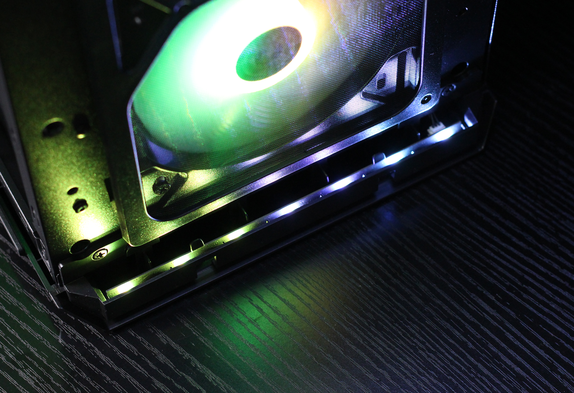 前面板的顶部与底部还各隐藏一条ARGB灯带。在颜值方面拿捏的死死的。