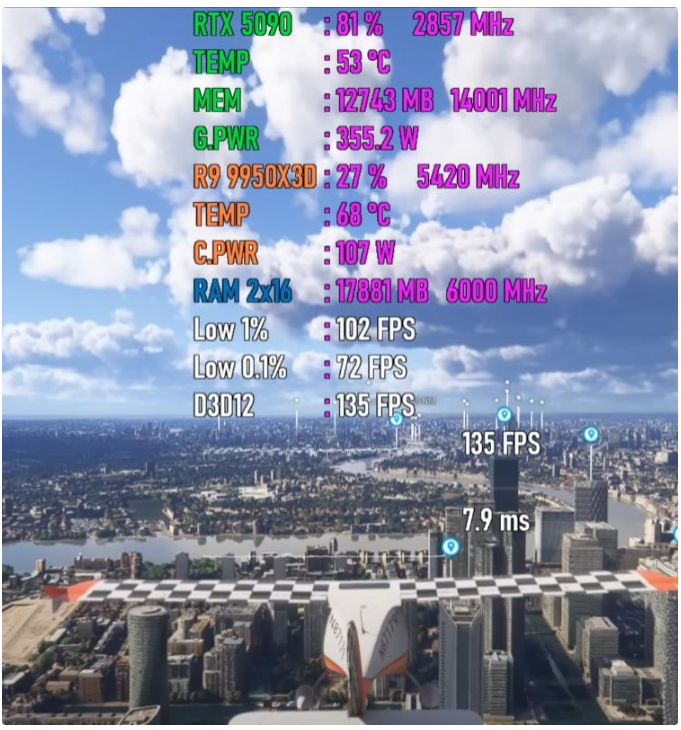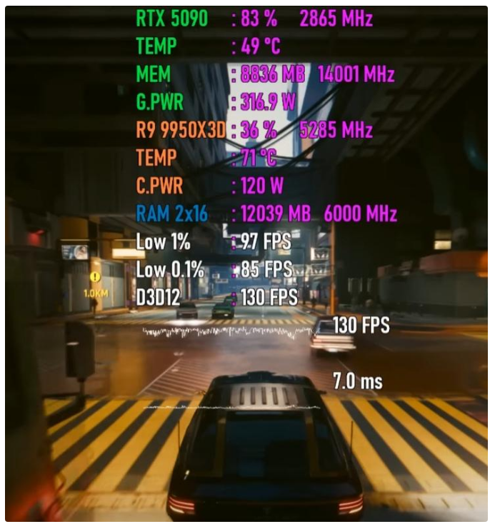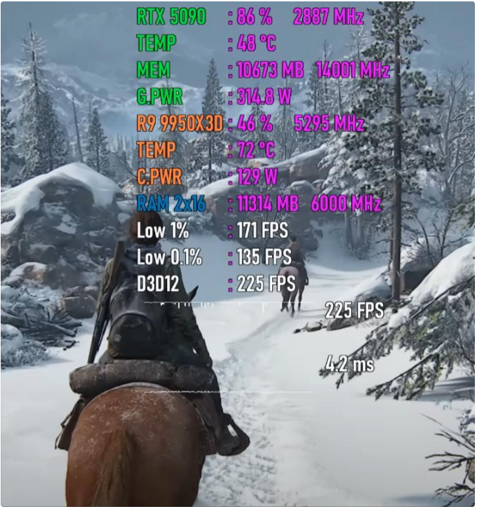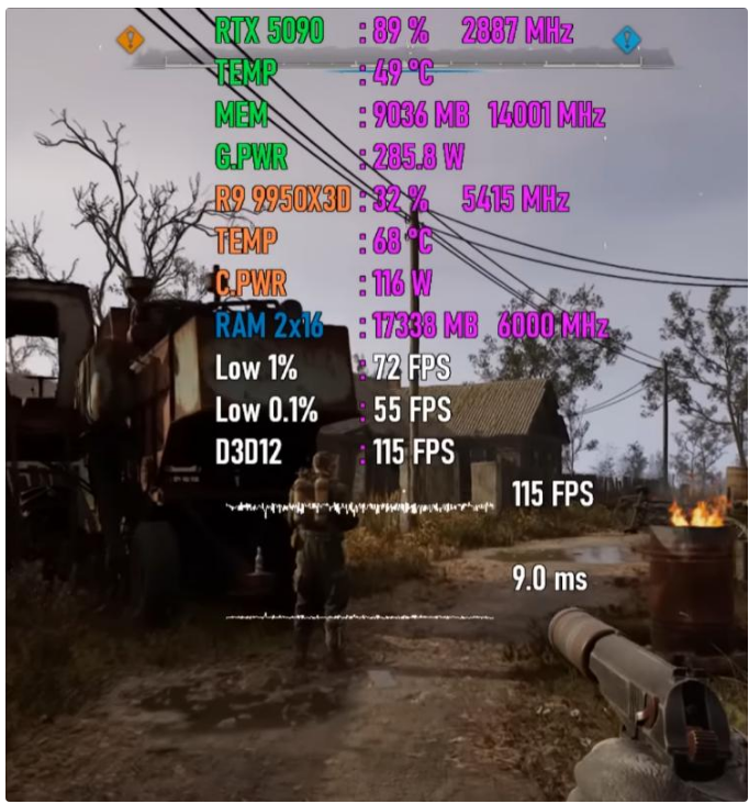 这就是Ryzen 9 9950X3D+GeForce RTX 5090这套“天花板级”配置的实际游戏性能表现,仅供参考。