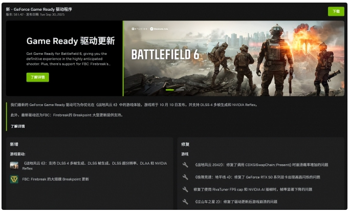 本次的《战地 6》使用最新的寒霜7.0引擎打造,新引擎的加持使得画面效果无比真实,为达到逼真的效果,游戏中的战场建筑工事都可以被破坏,大幅增强了玩家游玩的沉浸感。此外,《战地6》还支持一系列硬件的黑科技功能,包括画质升级、帧生成、抗锯齿和延迟优化,覆盖有最新Intel XeSS、和 AMD FSR。随着进一步官方公布PC端的配置要求,作为全球显卡保有量最大的厂商——NVIDIA也确认《战地6》将在发售时支持 DLSS 4 多帧生成、DLSS 帧生成、DLSS 超级分辨率、DLAA,以及 NVIDIA Reflex。这样一来,只要你是 GeForce RTX 显卡用户,就能轻松享受到游戏加速与体验优化的福利,游玩时画面更顺滑,操作响应也会更迅捷。