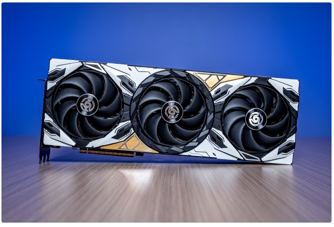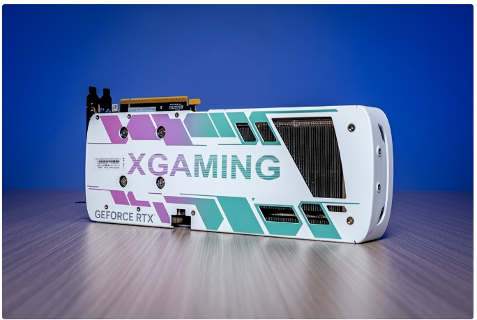 纯白的主调搭配上哑光的磨砂外壳,使得显卡的握持感扎实且有分量,没有多余的花哨,背板的镂空ICE STORM 2.0堆叠密集鳍片式的散热铠甲,大幅增加了散热面积。此外,三片大口径的环刃风扇也能够有效降低风噪,提升风量、风压和垂直风流穿透力,大幅增强散热效率。