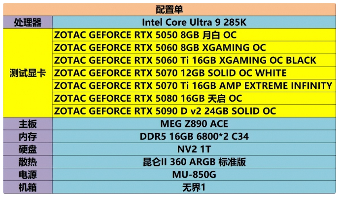 根据官方给出的推荐配置,RTX 3060 Ti 就能流畅运行《战地 6》,可见这款游戏本身对硬件的门槛并不算高。而对于今年刚新鲜上市的 50 系显卡来说,应付它的 “常规运行” 更是不在话下。不过,为了更深入地摸清不同定位的 50 系显卡在驾驭《战地6》时究竟能有怎样的表现?我们游侠硬件组打算通过一场全面的横评测试,把这些显卡的真实游戏性能彻底拆解清楚。为此索泰也是慷慨解囊,及时为我们提供了七款覆盖不同价位段的50系显卡,为我们的这次评测添砖加瓦!