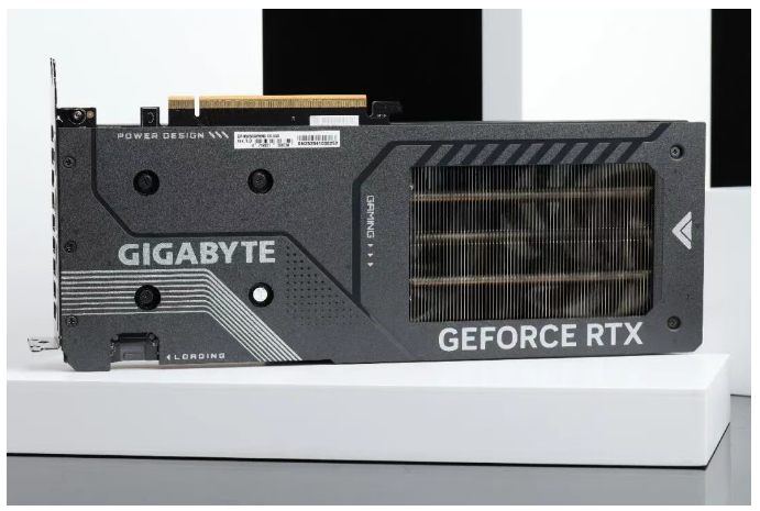 显卡右侧,技嘉GeForce RTX 5050 GAMING OC魔鹰8GB亦采用了极富层次感的设计,包括小切角、线条以及纹理等设计。