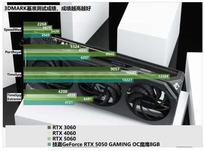 从产品的实际定位出发来看,技嘉GeForce RTX 5050 GAMING OC魔鹰8GB并不是一款主要面向生产力创作以及AIGC的产品,但基于NVIDIA Blackwell架构打造的它承袭了一些Studio方面的新特性,能够帮助它较上代产品更好地应对部分生产力创作应用的需要。