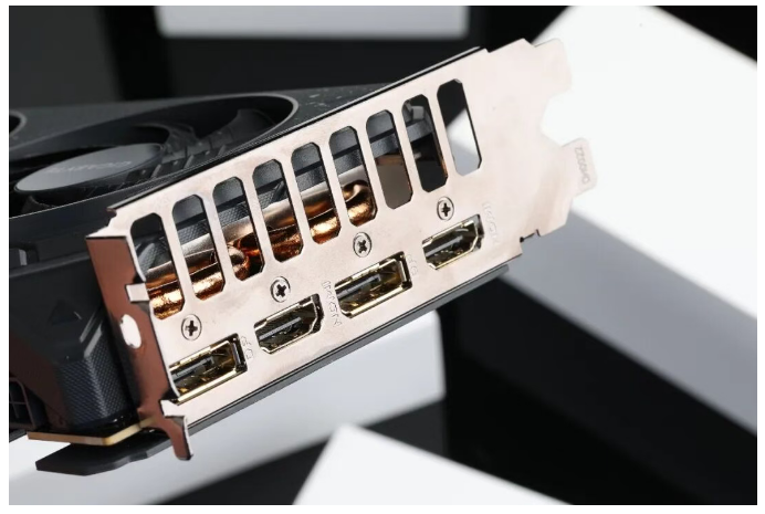 在视频接口方面,技嘉GeForce RTX 5050 GAMING OC魔鹰8GB显卡采用了3×DP 2.1b + 1×HDMI 2.1b的接口配置,并且该部分运用了镂空设计进行装饰。