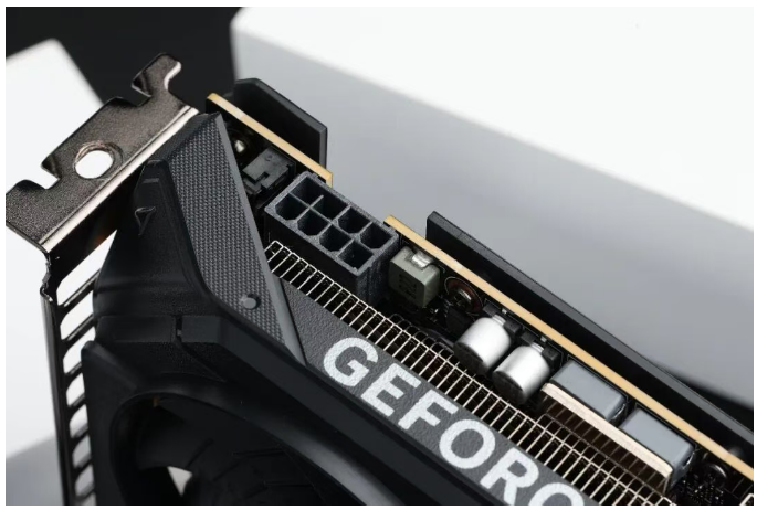 技嘉GeForce RTX 5050 GAMING OC魔鹰8GB于顶部左侧设计了一个8pin供电接口,方便用户替换显卡时平滑过渡。