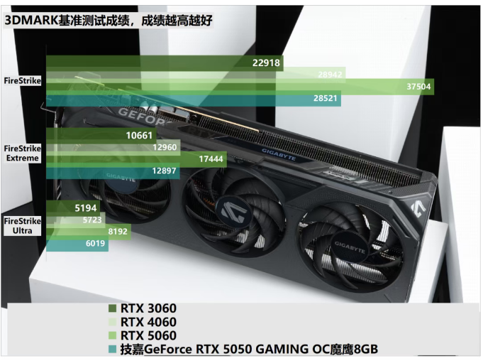 经过实际测试,我们能够明显看到技嘉GeForce RTX 5050 GAMING OC魔鹰8GB显卡在性能上展现出的优秀品质——它不仅能够轻松应对RTX 3060 12GB的挑战,更在DLSS 4游戏性能测试中,显著超越了RTX 4060 8GB和RTX 3060 12GB。同时,在《黑神话:悟空》、《赛博朋克2077》等对显卡性能要求极高的游戏中,该显卡亦能提供流畅的游戏体验,且不损害游戏画质。事实上,随着技术的进步,越来越多的3A级大作和新潮电竞网游开始支持DLSS技术,这进一步提升了对显卡性能的需求。在不启用DLSS的情况下,即便是RTX 5060 8GB也难以应对《永劫无间》、《三角洲行动》等1080p全特效游戏的挑战,更不用说其他三款显卡了。因此,要在保证画面质量的同时,享受流畅的游戏体验,DLSS 4也就显得尤为重要。回到产品本身,用料扎实的技嘉GeForce RTX 5050 GAMING OC魔鹰8GB显卡不仅性能出色,还具备良好的超频潜力和散热性能,其外观设计也颇具辨识度与吸引力。综合考虑,该显卡无疑是追求1080p全特效游戏体验、急需替换RTX 3060、RTX 2060、GTX 1650等显卡用户的高性价比之选。
