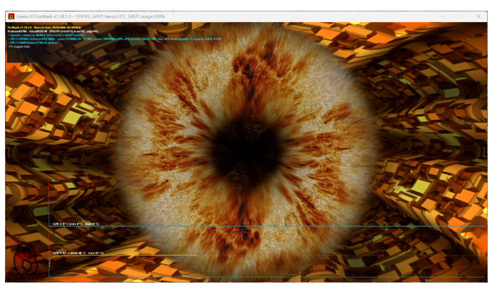 作为一款甜点级显卡,技嘉GeForce RTX 5050 GAMING OC魔鹰8GB的TDP仅为130W,因此它的内部发热量相比它的“哥哥们”也会得到更好地控制。为了验证这个想法,我们通过Furmark对这款显卡进行烤机测试。