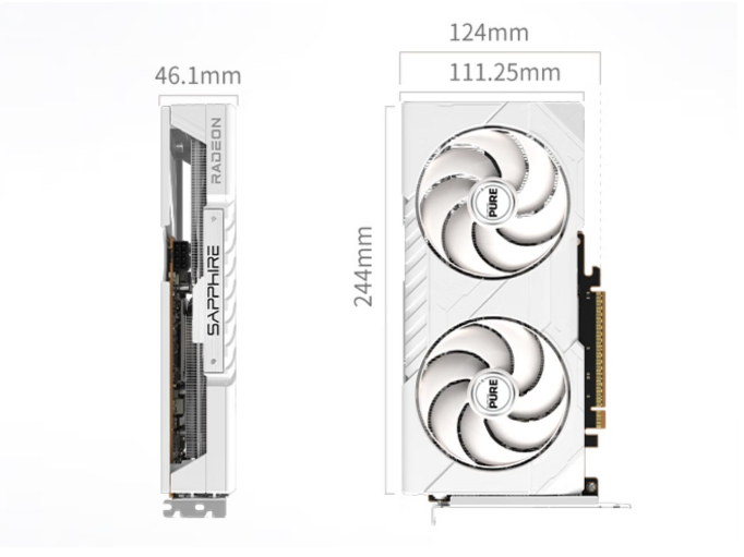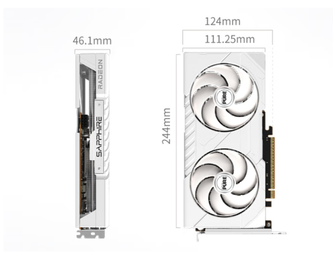 作为AMD显卡阵营的核心AIB合作伙伴,蓝宝石的PURE极地系列以高颜值和扎实做工著称。这款RX 9060 XT 16G极地显卡采用了纯白配色方案,2.3槽双风扇的紧凑设计,长度仅为标准尺寸,非常适合追求小体积机箱的玩家。显卡正面采用家族式外观设计语言,简洁的线条搭配纯白配色,无论是搭配白色主题主机还是作为机箱内的视觉焦点,都能带来出色的视觉效果。