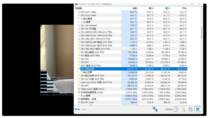 开始处理器性能测试之前,我们先来看看锐龙9 9950X3D的功耗释放情况。可以看到,在处理器满负荷运行时,锐龙9 9950X3D能保持将近200W的功耗释放,这是该U的正常表现,说明蓝宝石 NiTRO+ 氮动B850A WIFI完全可以跑满锐龙9 9950X3D这种旗舰型处理器。