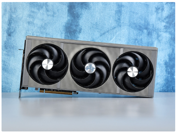 而氮动为蓝宝石旗舰系列,在用料与硬件规格上无愧旗舰之名。蓝宝石RX 9070 16G氮动采用了三风扇散热系统,内置6根复合热管,并引入了新一代飞翼轴流扇(支持快拆设计),能够迅速带走核心热量,保证显卡在高负载下依旧保持低温低噪。