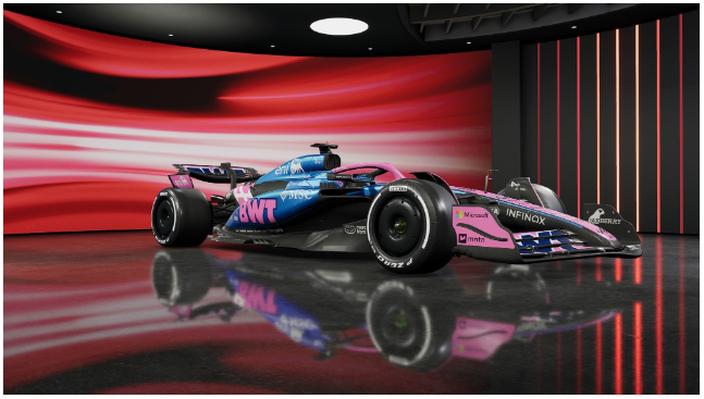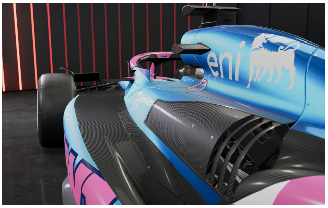 整车的反射效果则更加全面,包括尾板,车身漆面、阴影等等,它将F1赛车的美感与设计感刻画的惟妙惟肖,如果隐藏界面UI的话,真的很难分辨出虚拟还是现实。