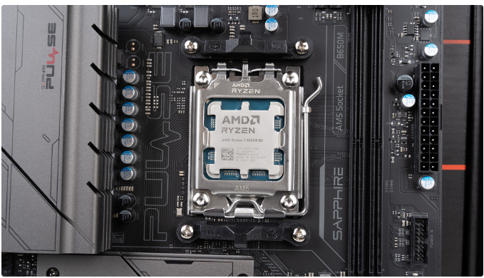 PULSE脉动B650M WIFI覆盖了CPU VCORE部分的大面积散热马甲,并配备7+2+1相(60A)供电,CPU供电接口为单8pin,应对锐龙9000家族没有问题,各位大可参考测试部分的烤机情况。