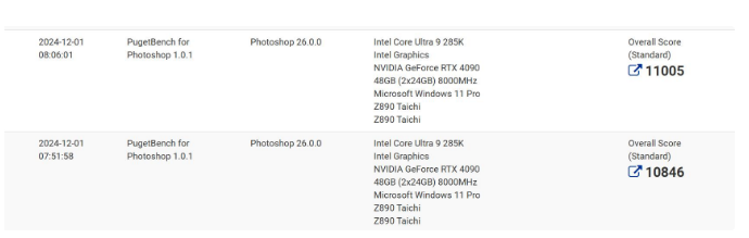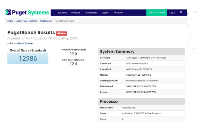 在DDR5 6200C26和PBO 2技术加持下,9800X3D运行PugetBench for Creators中的PS项目Standard模式得分12986。