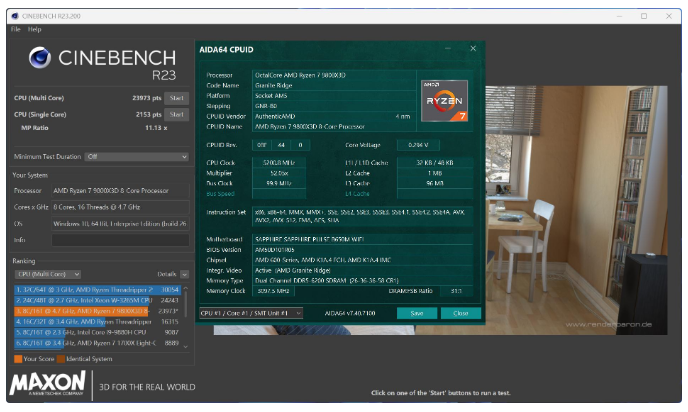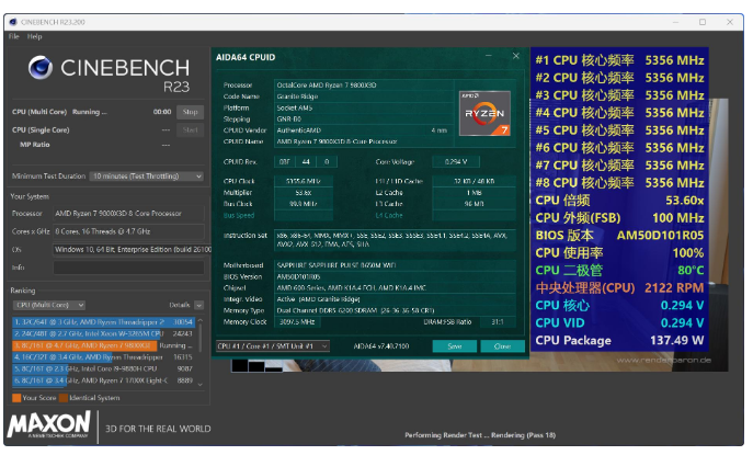 CINEBENCH R23,9800X3D+PULSE脉动B650M WIFI多核跑分23973 pts,单核跑分2153 pts,与大厂B650和X870表现就是一个水平,完美~