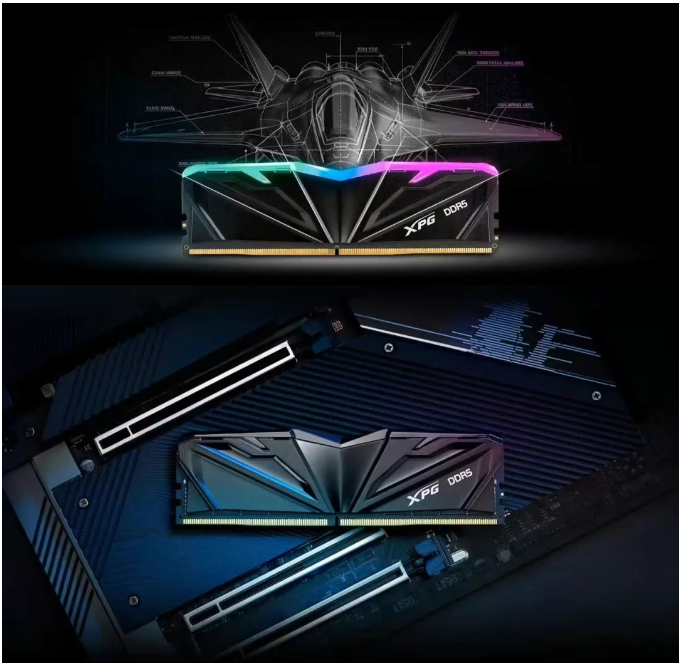 威刚XPG ARMAX (RGB) DDR5系列采用硬派散热片,灵感源自战斗机肌肉线条与流线美学,搭载XPG首创V字形曲线顶部设计。