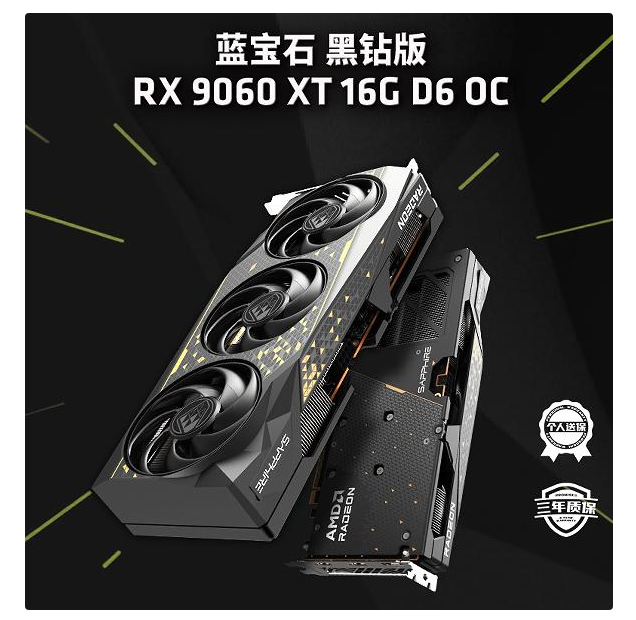 蓝宝石黑钻家族专为中高端游戏玩家打造的——蓝宝石黑钻 RX9060 XT 16G D6OC正式上线。这款显卡凭借4nm先进制程工艺、Tri-X三风扇散热系统及第二代AI加速器等前沿技术,在性能、能效与散热设计上实现又一次突破,同时,以2899元的起售价形成对竞品的价格优势,成为2K分辨率游戏市场中高端玩家与创作者的理想之选。