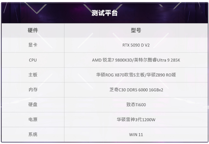 本次测试我们会记录AMD 锐龙 7 9800X3D以及英特尔酷睿Ultra 9 285K两款处理器平台的常规帧数以及1% Low帧的表现。测试游戏选择《魔兽世界:时光》、《怪物猎人:荒野》、《漫威争锋》、《战地6》、《极限竞速:地平线5》、《绝地求生》、《使命召唤:黑色行动7》、《剑星》、《无畏契约》这9款游戏进行测试。选择范围包含新上线以及目前主流网游以及部分3A游戏大作进行测试,测试画质预设最高,主要展现1080p分辨率的游戏帧数,1080p最能体现CPU本身的性能表现。