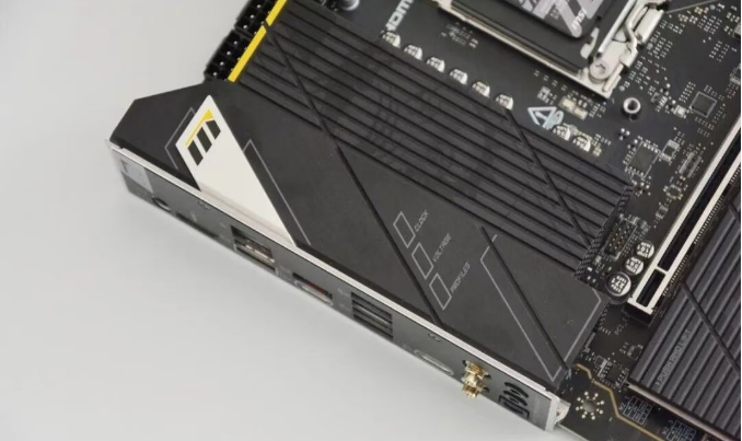 左侧供电模组散热面积相当巨大,整块散热器甚至延伸至IO面板区域,整体还设计成了沟壑条状,进一步加大散热面积,实际用手触摸,触感冰凉。