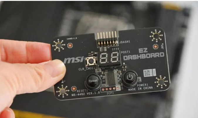 这次微星B850MPOWER赠送了一块EZ Dashboard面板,除了能显示系统的侦错消息,它还集成了电源开关、系统重启、清除CMOS按键等三枚实体按键。
