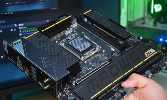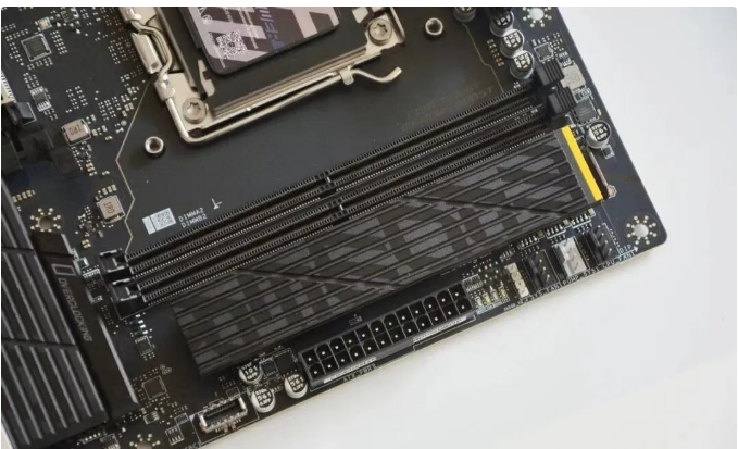 作为一款MPOWER系列的主板产品,为了更好的超频,主板仅配备两条DDR5内存插槽,且整体的位置和处理器插座一起组成完美的等腰三角形,可以达成DDR5内存的完美布线。