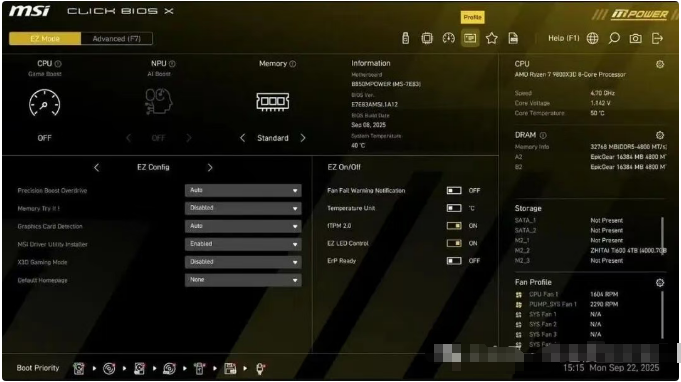 我们可以看到新的UI风格更加直观,在EZ-MODE主界面中,集成了PBO、Memory Try lt !、X3D Gaming Mode这些选项,非常直观。