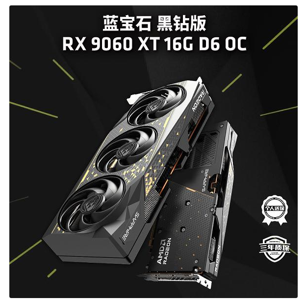 蓝宝石黑钻家族专为中高端游戏玩家打造的新品——蓝宝石黑钻 RX9060 XT 16G D6OC显卡。这款显卡凭借4nm先进制程工艺、Tri-X三风扇散热系统及第二代AI加速器等前沿技术,在性能、能效与散热设计上实现又一次突破,同时,以2899元的起售价形成对竞品的价格优势,成为2K分辨率游戏市场中高端玩家与创作者的理想之选。