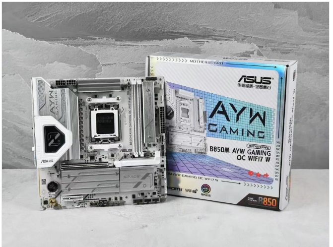 这两年的AMD处理器的崛起可谓是势如破竹,因为此前AMD也曾承诺AM5平台将会持续应用到2027年后,相对健康的使用寿命,相信让不少游戏爱好者都将装机的首选CPU放到了AM5平台上。除了优秀的游戏性能外,AM5平台出色的性价比也是其受欢迎的因素之一。为了让玩家在有限的预算中,体验到更好的性能,华硕在近期推出了B850M AYW GAMING OC WIFI7 W主板。这是一款采用双内存槽且具有超频功能的主板,也是华硕首次将这种可玩性很高的配置下放到M-ATX版型的B850主板上来。这次的AYW主板以四分之一的价格提供了可以媲美高端X870E主板的超频能力,并且在液氮的加持下内存超频10G,轻松打破了多项世界记录,下面我们就开启正式的评测。