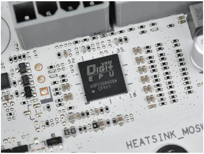 供电模组采用12+2+1相80A DrMOS设计,核心供电主控为华硕定制ASP2308AGQW控制器,MISC供电由位于主板背面的RT3672JE控制。双8PinCPU供电接口与8层PCB的组合,可以为锐龙9000系列提供稳定运行保障。