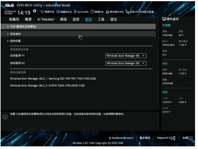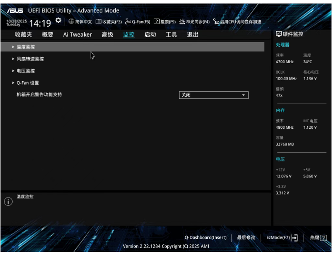 BIOS界面底部设置有Q-Dashboard功能,可以显示每个插槽与接口的硬件信息。