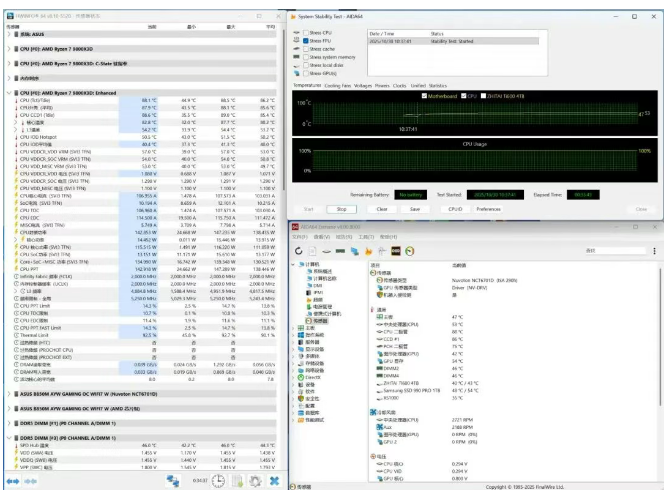 可以看到在开启PBO后,锐龙 7 9800X3D释放了全部性能,功耗也是达到了140W,平均温度基本稳定在90℃以下,且没有出现任何异常,这证明这款当下最热门游戏处理器对于华硕B850M AYW GAMING OC WIFI 7 W 主板来说,可以轻松驾驭。