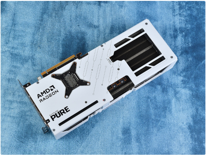 蓝宝石RX 9070 16G极地显卡采用了全尺寸金属背板,不仅提升了显卡的结构强度,防止PCB弯曲,也增强了整体的散热效能。纯白的外观设计搭配简约的线条,是组建白色主题主机的绝佳选择。
