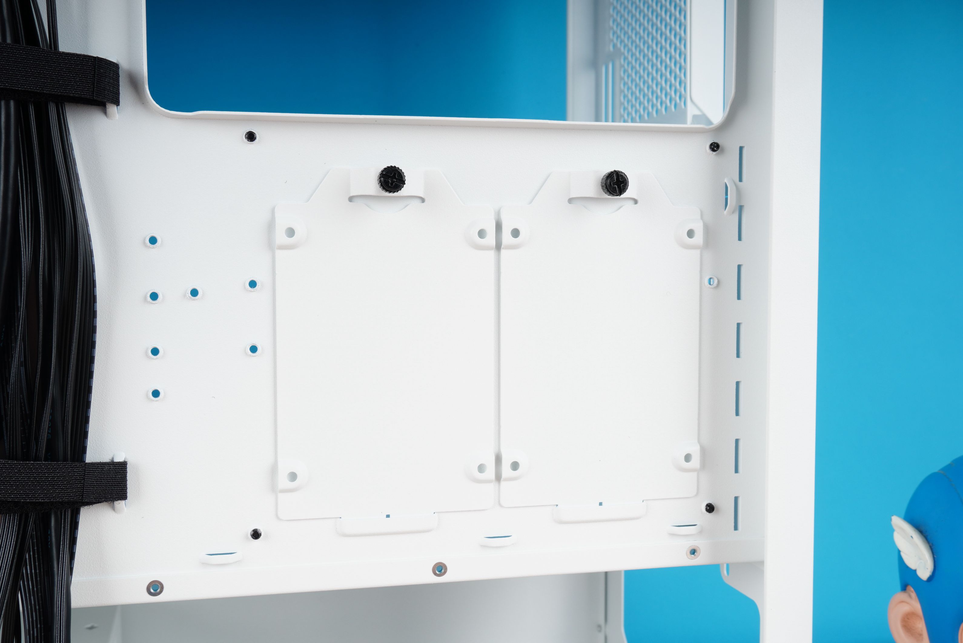 机箱的HDD硬盘支架配备了一个免工具的安装支架。并且如果不需要安装HDD硬盘的话可以把整个硬盘支架拆卸掉,腾出更多的电源安装空间。接下来直接来看看装机效果吧。