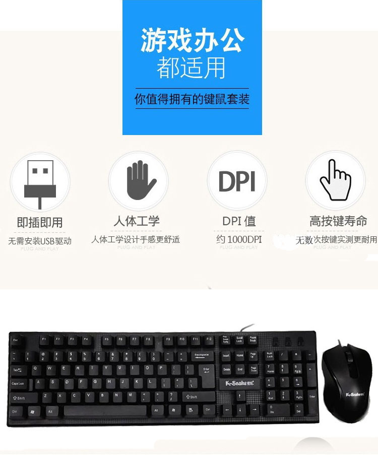 蝰蛇KM-100 键盘鼠标套装 USB有线键盘