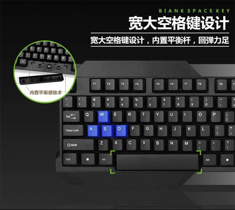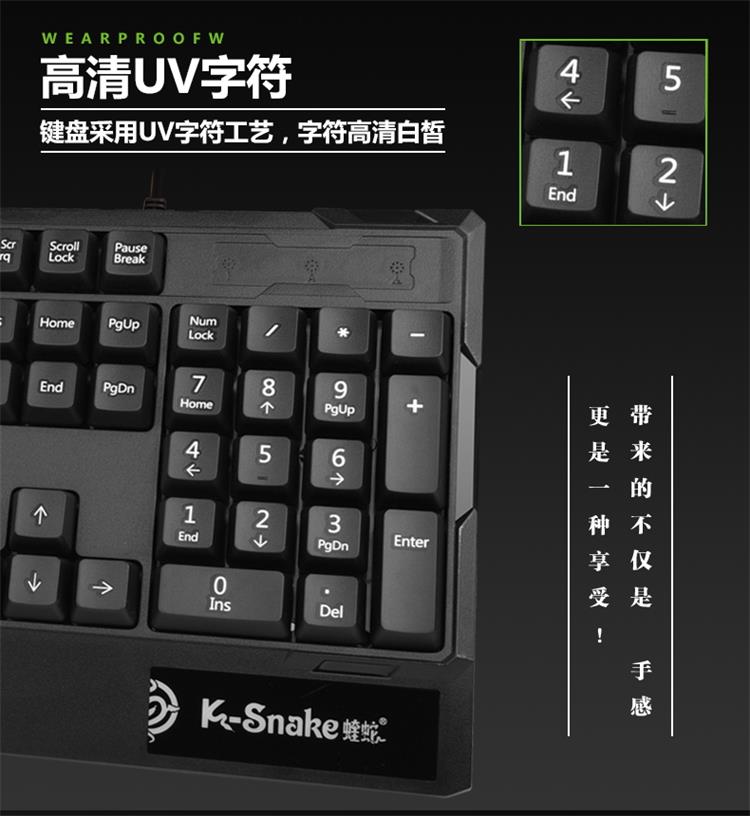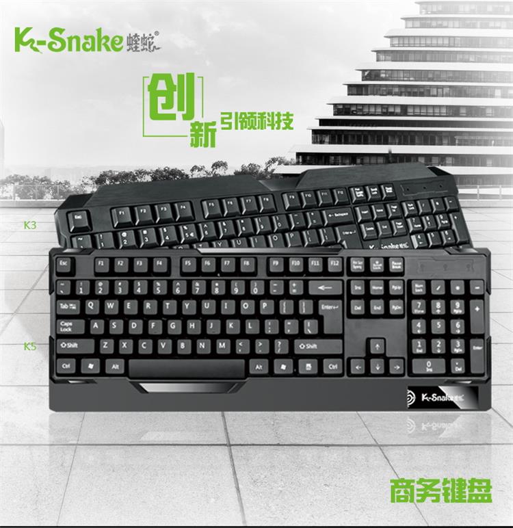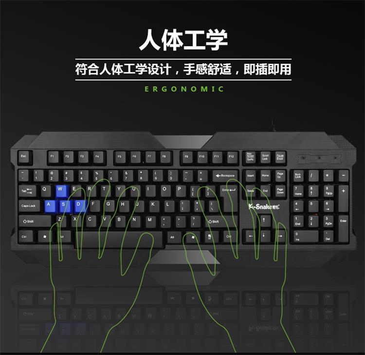 蝰蛇 K5 台式笔记本电脑USB有线键盘 办公商务家用游戏鼠标键盘 防水设计