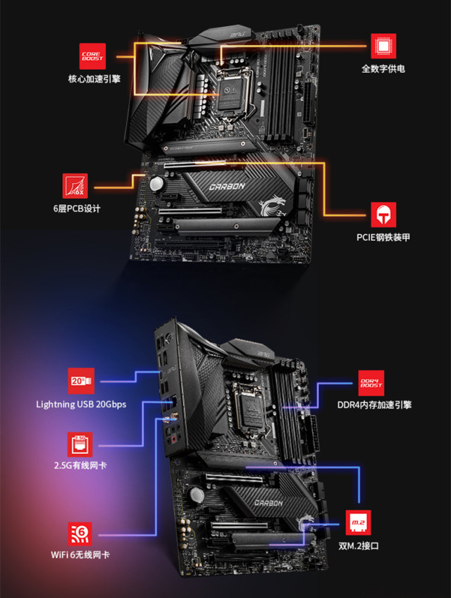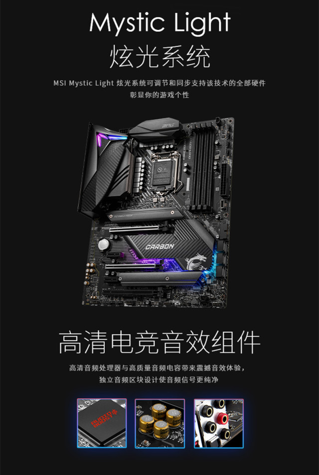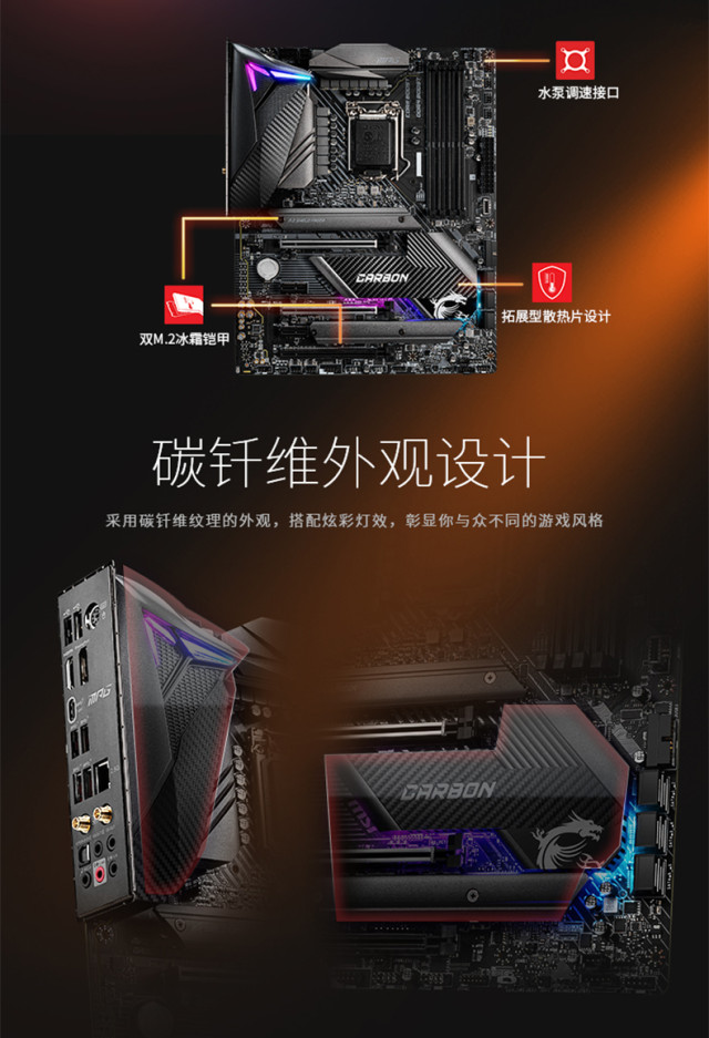 微星(MSI)MPG Z490 GAMING CARBON WiFi暗黑板电脑主板 支持 CPU 10900K/10700K 昆明主板