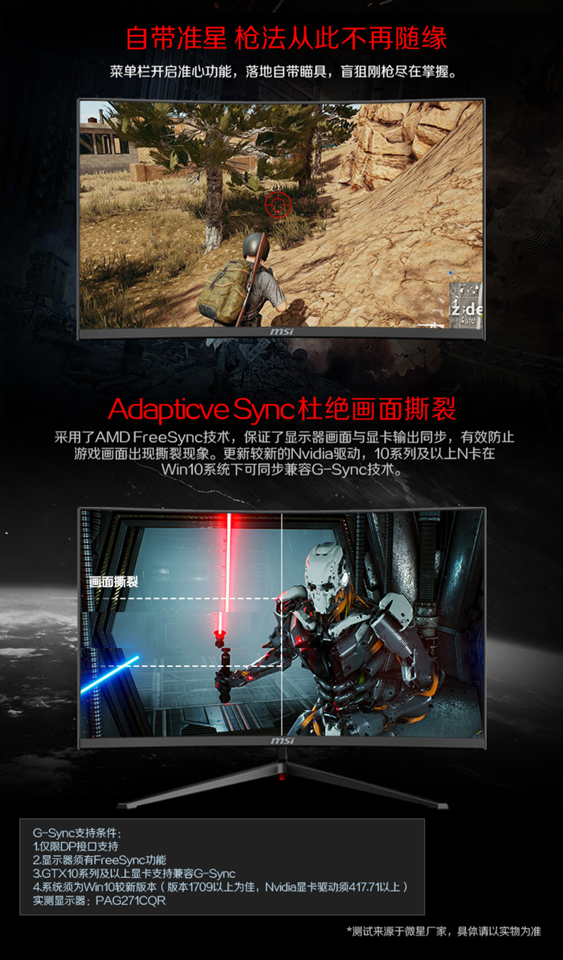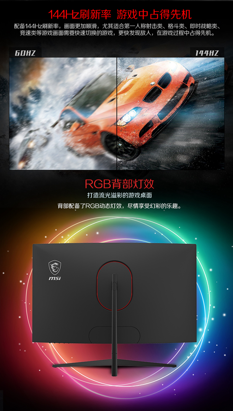 品牌: 微星(MSI)商品名称:微星PAG241CR 商品产地:中国大陆商品 毛重:4.64kg 面板:VA屏刷新率:144HZ曲率:1000R-1100R售后服务:3年上门,3年质保特征:FreeSync,可壁挂尺寸:24英寸接口:HDMI,音频/耳机输出