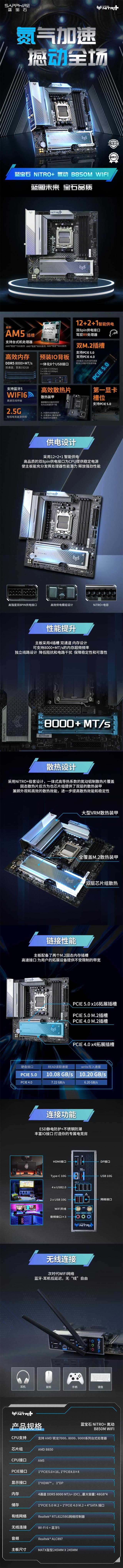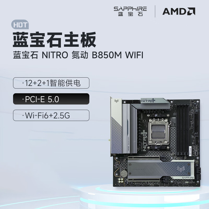 蓝宝石 氮动 NITRO B850M WIFI主板 支持AMD 锐龙9000/8000/7000系列处理器